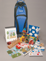 The M-P-R comes in a convenient, portable travel case with wheels. All toys and manipulatives are “choke-safe.”